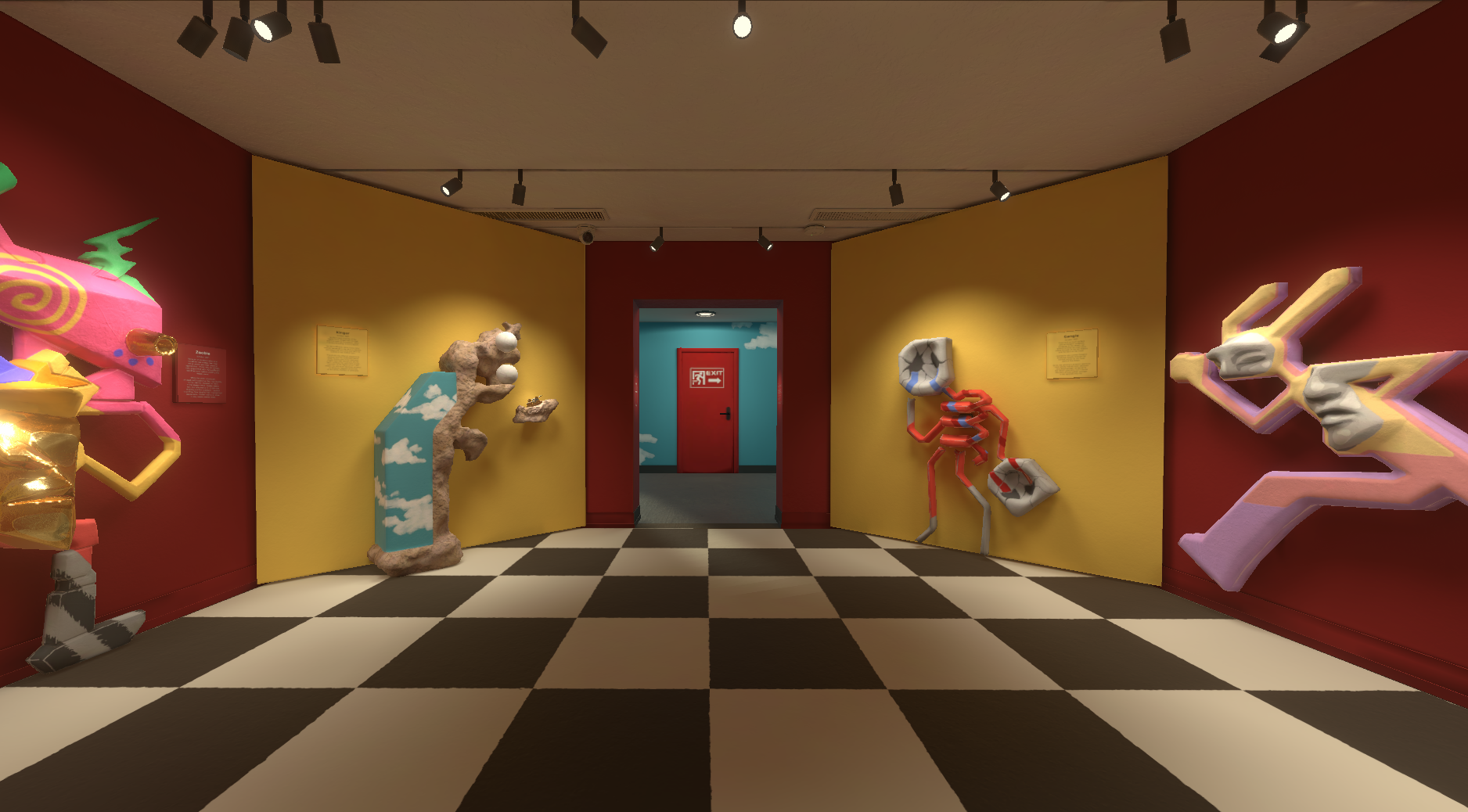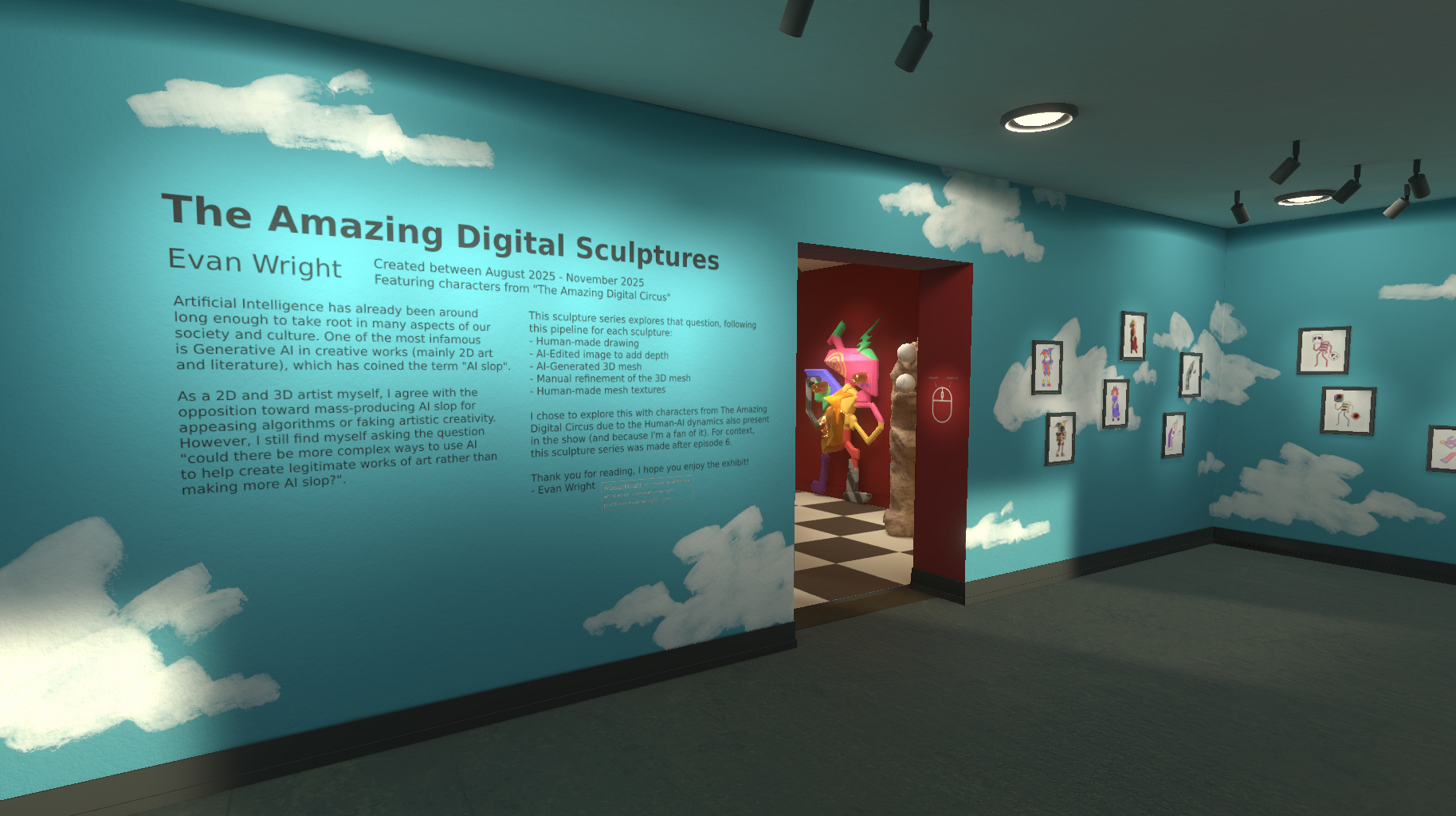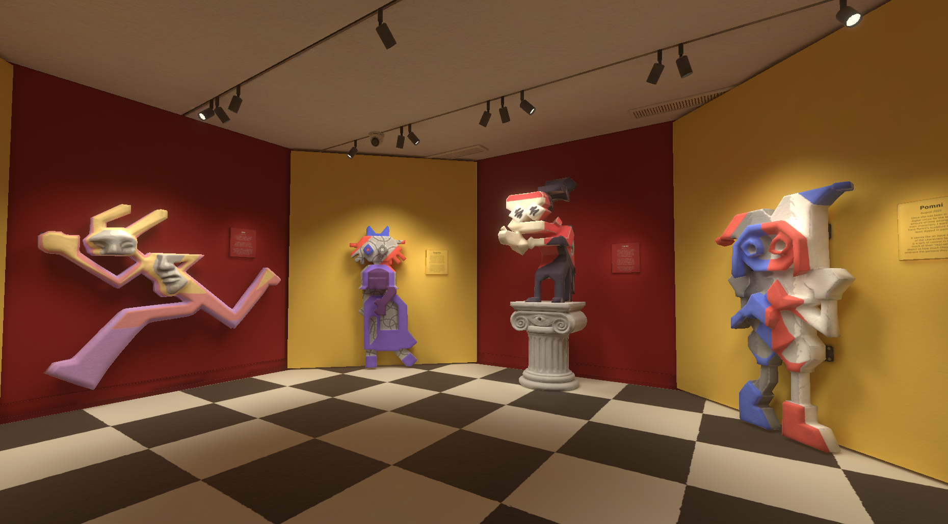 A small virtual art exhibit featuring 3d sculptures based on the main characters from the Amazing Digital Circus show!